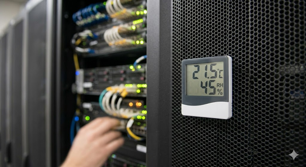 Влажность воздуха — параметр коварный. Слишком низкая относительная влажность (менее 20%) способствует накоплению статического электричества, разряд которого может мгновенно вывести из строя сетевое оборудование. Избыточная влажность (выше 60%) провоцирует коррозию контактов и может привести к выпадению конденсата при резких перепадах температур.